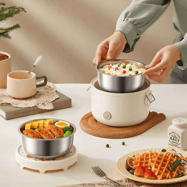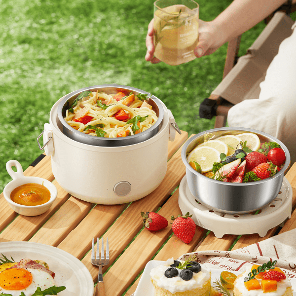 Hộp cơm điện Bear DFH-C15D2 chinh phục người dùng ngay từ ánh nhìn đầu tiên với kiểu dáng nhỏ gọn, tinh tế, mang phong cách tối giản nhưng không kém phần hiện đại. Nhờ thiết kế vừa vặn, sản phẩm dễ dàng đặt trong balo, túi xách hay ngăn bàn làm việc mà không chiếm nhiều diện tích. Đây là lựa chọn lý tưởng cho những ai thường xuyên mang theo bữa ăn khi đi làm, đi học hoặc trong các buổi dã ngoại ngoài trời.